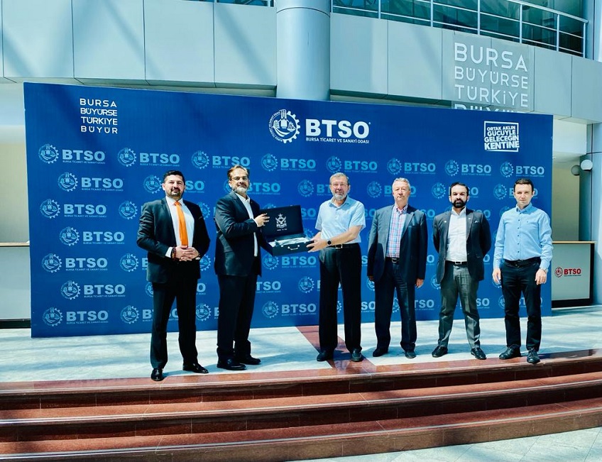 Pakistan Hava Kuvvetlerinden Tümgeneral Sn. Faisal Ayaz, KEIL Fabrikası COO’su Sn. Nadir Mobeen Afridi ve Pakistan Türk İş Konseyi Başkan Yardımcısı Sn. Ahmet Khan’ı Odamız BTSO’da ağırladık.